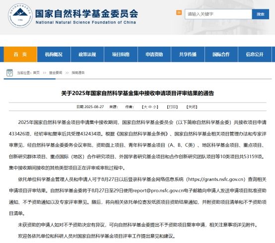 8月27日,2025年国家自然科学基金集中受理项目评审结果揭晓。beat365体育官网喜获6项国家自然科学基金项目立项,其中面上项目4项,2项青年科学基金(C类),这一成绩创下了学院国家自然科学基金立项历史新高。