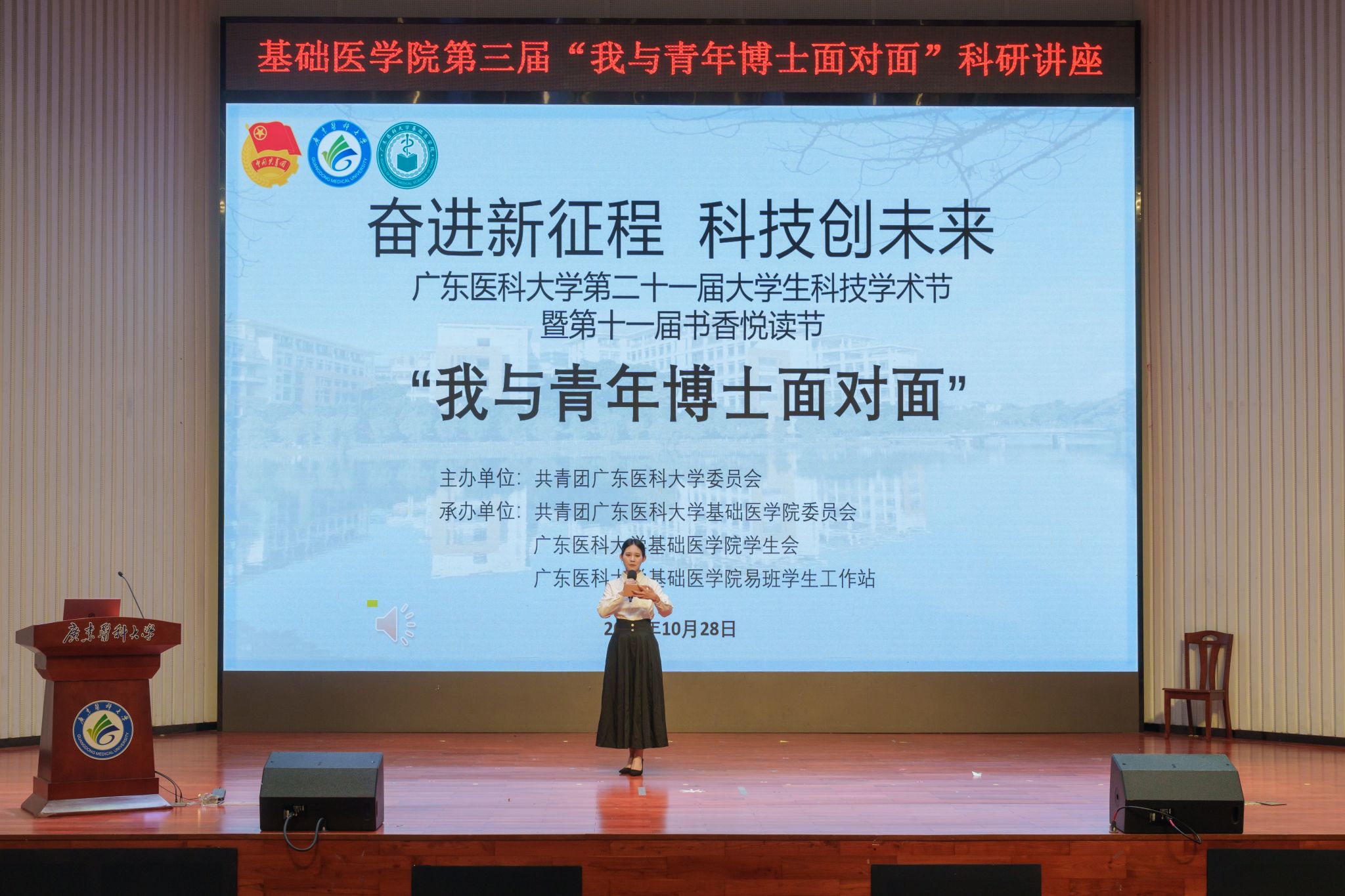为帮助有志于参与科研的学生了解相关细节、加强指导交流,第三届“我与青年博士面对面”讲座于10月28日在东莞校区图书馆报告厅顺利举行。本次活动由共青团beat365体育官网委员会主办,由共青团beat365体育官网,beat365官方网站委员会承办,特邀李雪萌博士、杨小骏博士、周军智博士三位杰出学者担任主讲。三位博士分别以科研方法论、科研经验谈以及创新育才观为主题展开分享,为同学们带来了一场内容丰富、启发深刻的学术交流。
